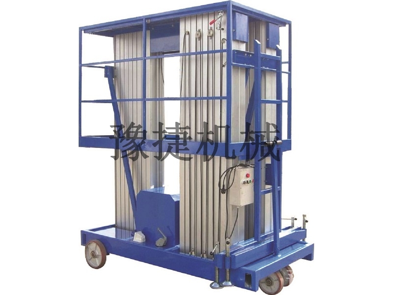 桅铝合金升降平台:采用优质高强度铝合金材料,具有造型美观、体积小、重量轻、升降平稳、安全可靠等优点。广泛用于工厂、宾馆、餐厅、车站、影剧院、展览馆等场所,是保养机具、油漆装修、调换灯具、电器、清洁保养等用途的理想安全伴侣。
