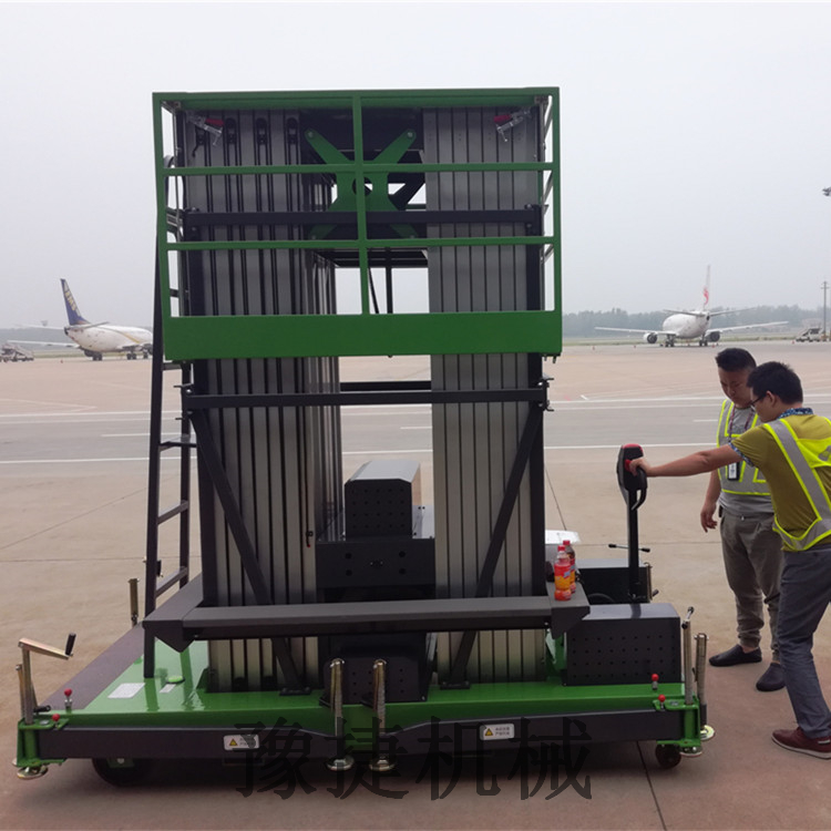 桅铝合金升降平台:采用优质高强度铝合金材料,具有造型美观、体积小、重量轻、升降平稳、安全可靠等优点。广泛用于工厂、宾馆、餐厅、车站、影剧院、展览馆等场所,是保养机具、油漆装修、调换灯具、电器、清洁保养等用途的理想安全伴侣。