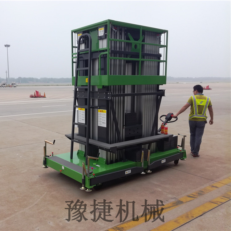 桅铝合金升降平台:采用优质高强度铝合金材料,具有造型美观、体积小、重量轻、升降平稳、安全可靠等优点。广泛用于工厂、宾馆、餐厅、车站、影剧院、展览馆等场所,是保养机具、油漆装修、调换灯具、电器、清洁保养等用途的理想安全伴侣。